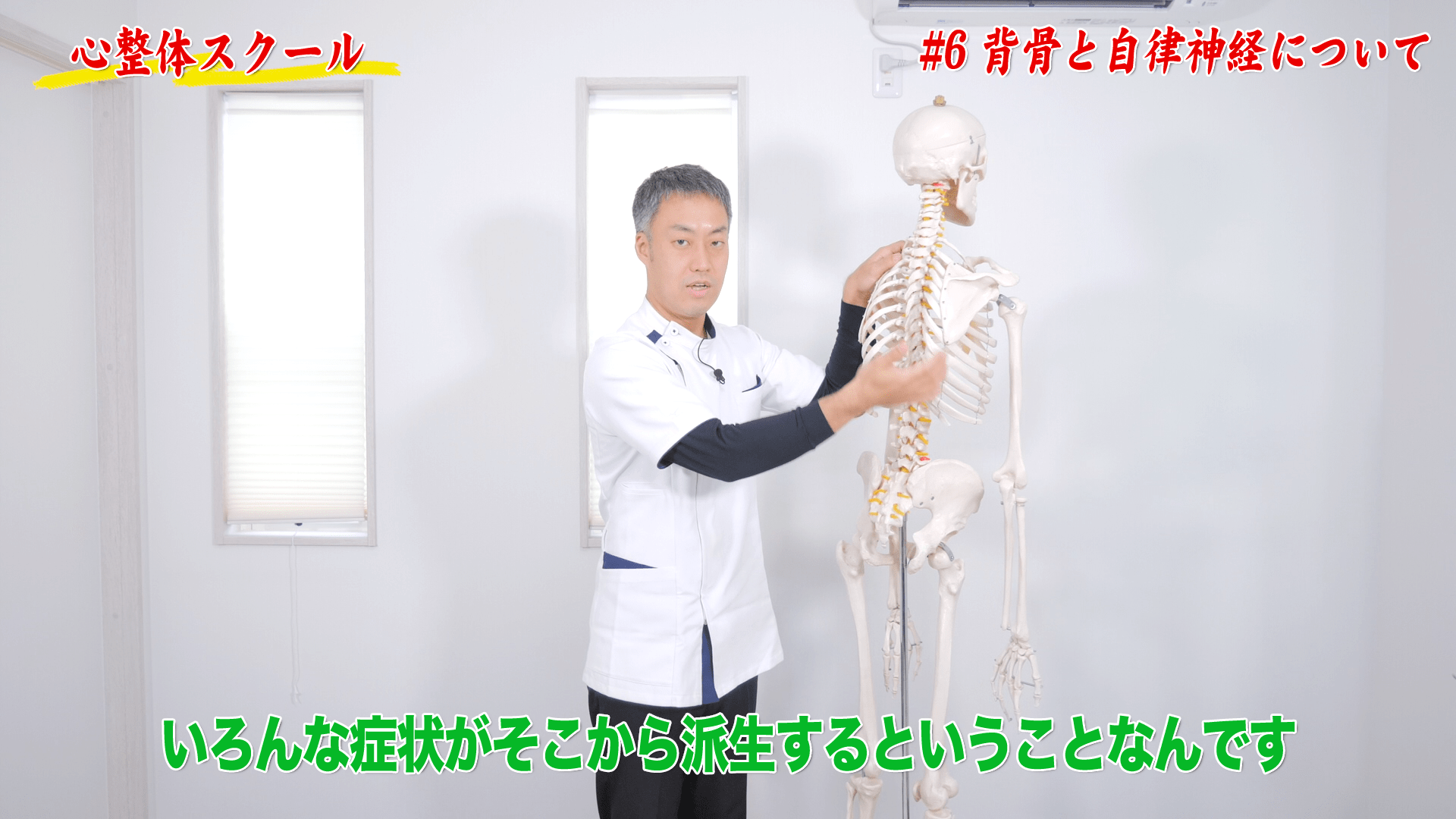 なぜ背骨と骨盤を見るかというと、背骨から全ての神経が出ているからです。自律神経もこの背骨と骨盤が深く関係しています。